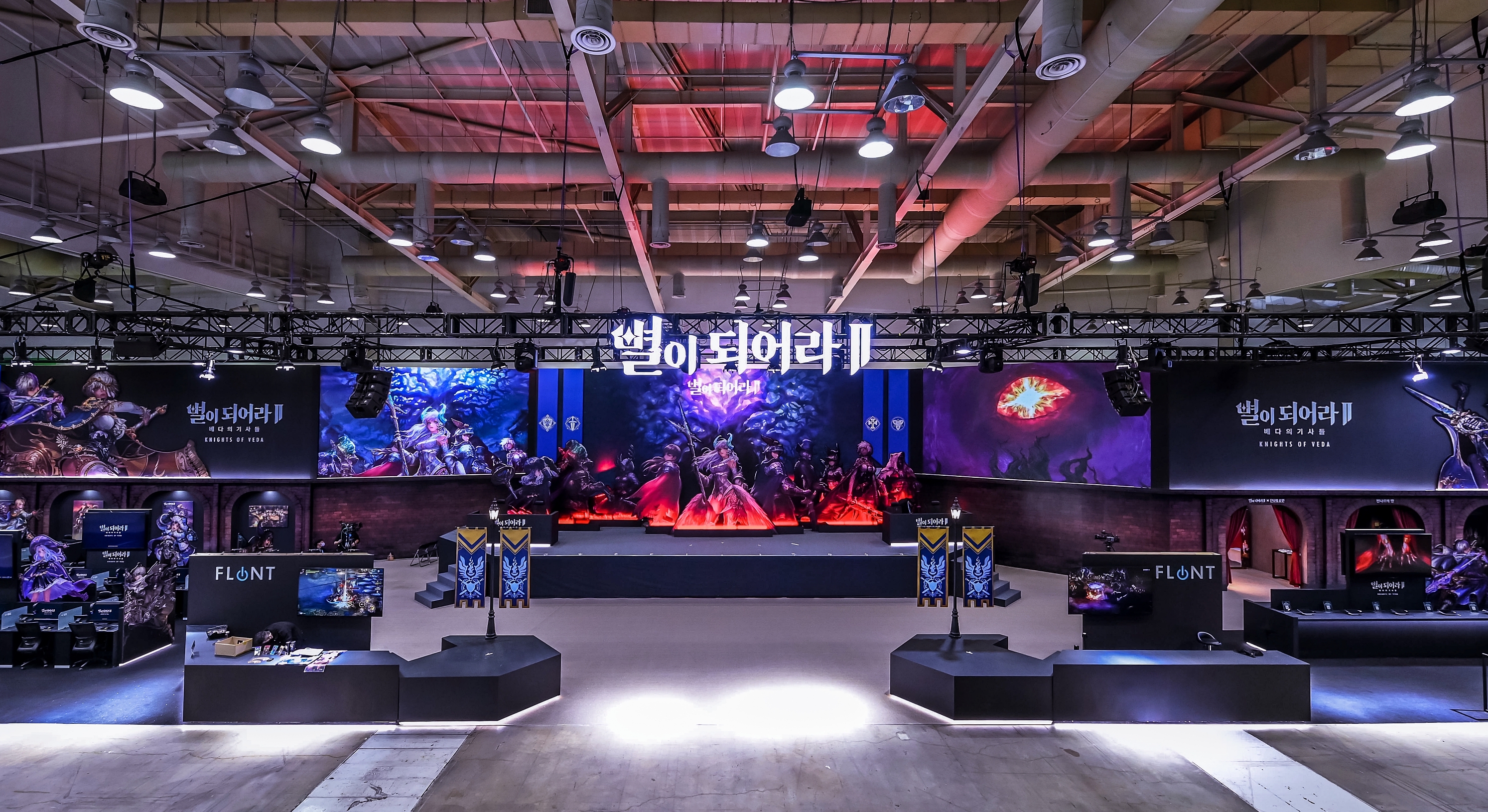 EIDETIC was responsible for designing, fabricating and activating Flint’s B2C exhibition booths within a footprint of 900m². From key visuals to the actual construction and brand application, Eidetic creatively leveraged Flint’s brand values to create an experiential booth while keeping IP and content top priority. To engage attendees, 80 demo devices were installed, showcasing Flint’s brand new game, Astra: Knights of Veda. Attendees also had the opportunity to experience demos on two types of devices which highlighted their latest features and an interactive photo opportunity. Attendees could enjoy instagrammable moments throughout the event with the photo booth, cosplay zone, and giant game characters displays. Additionally, they received high-quality merchandising as giveaways and the best gameplay from the live game tournament on stage. Throughout G-STAR, the stage was abuzz with engaging events and rich content that captivated attendees, including cosplay photo sessions, an OX Quiz, and more with streamers.